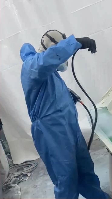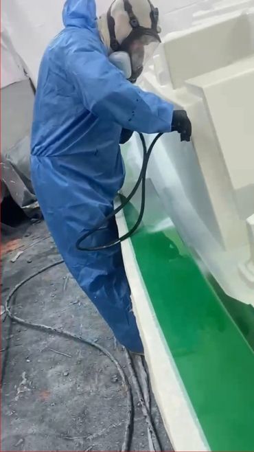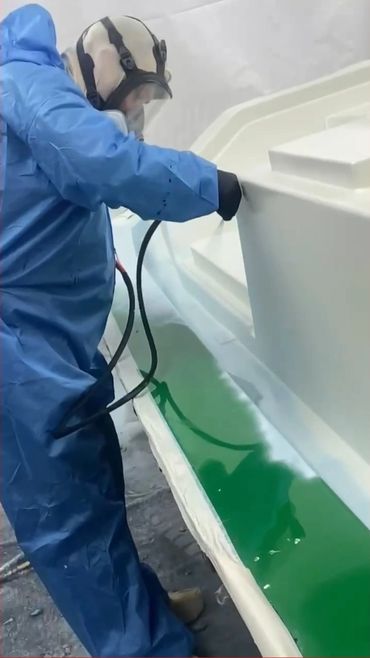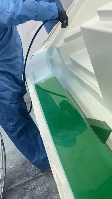 The video above is a NEW product we designed, patented and manufactured to apply gelcoat in very restricted areas where hand sprayers can't reach. Our customers love it.